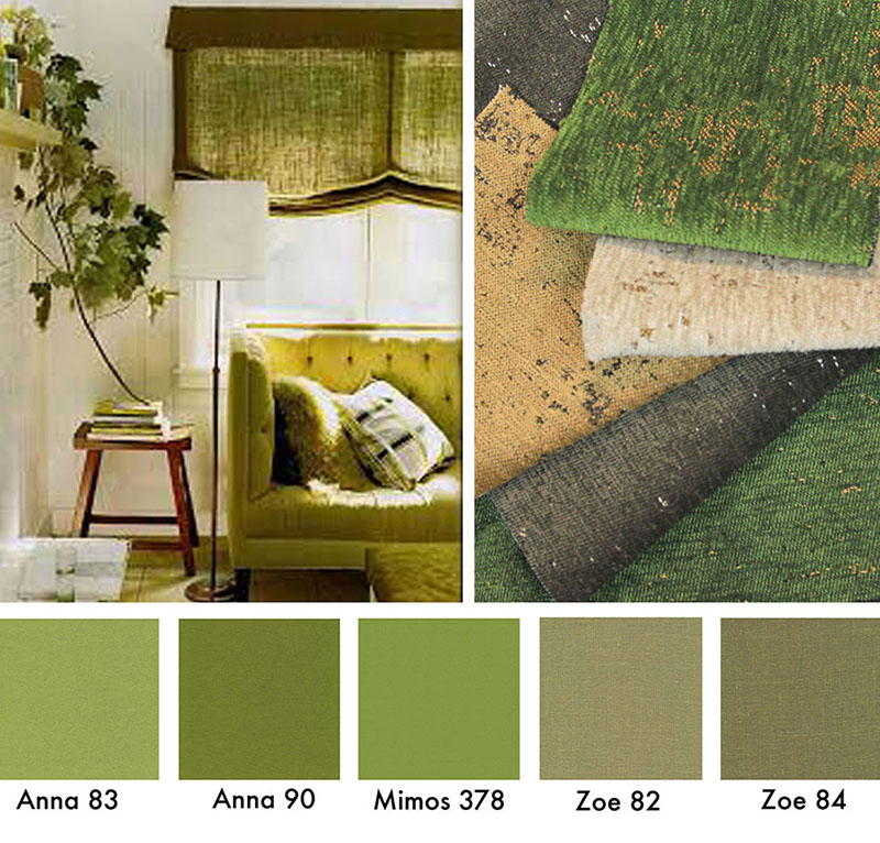 At Aznar Textil, we continue our policy of offering the latest trends and already have this green available in various plains including Anna colours 83 and 90, Mimos colour 378 and Zoe colours 82 and 84.