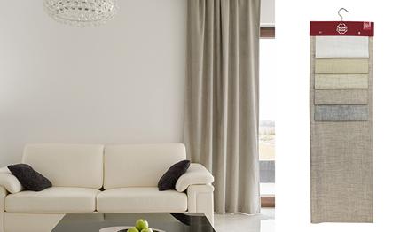 Una cortina que incorpora un semiliso de textura rústica y con un brillo natural que se presenta en cinco colores que abarcan desde el beige hasta el gris piedra.