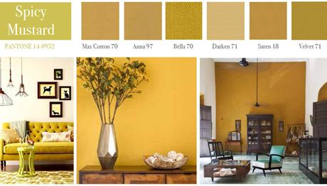 Idóneo para segundas residencias, este mostaza  inspirado en los colores de especias como el Curry o la  Cúrcuma, es perfecto para combinar con blancos, azules, teja y todo tipo de maderas exóticas.